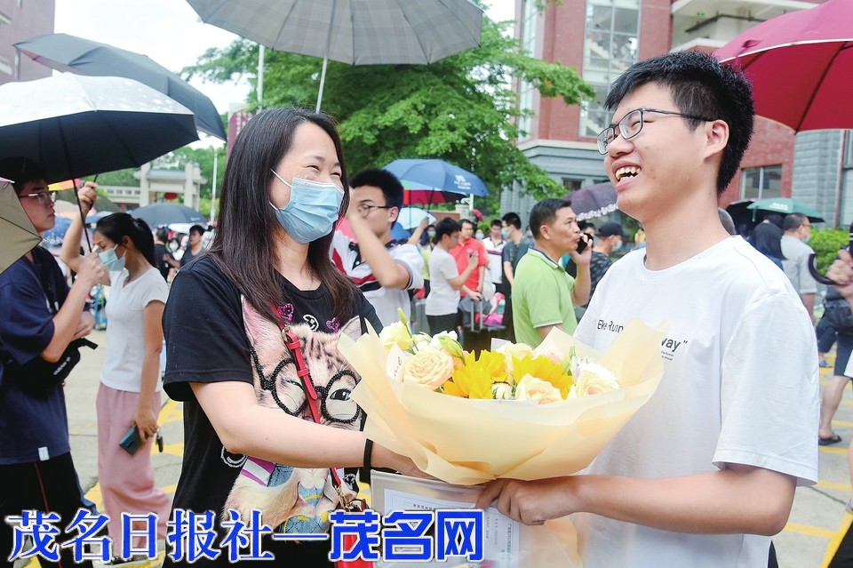 6月9日下午,为期3天的2022年全国高考圆满落幕。图为在市一中考点家长为考生送上鲜花。茂名日报社全媒体记者陈国汉摄