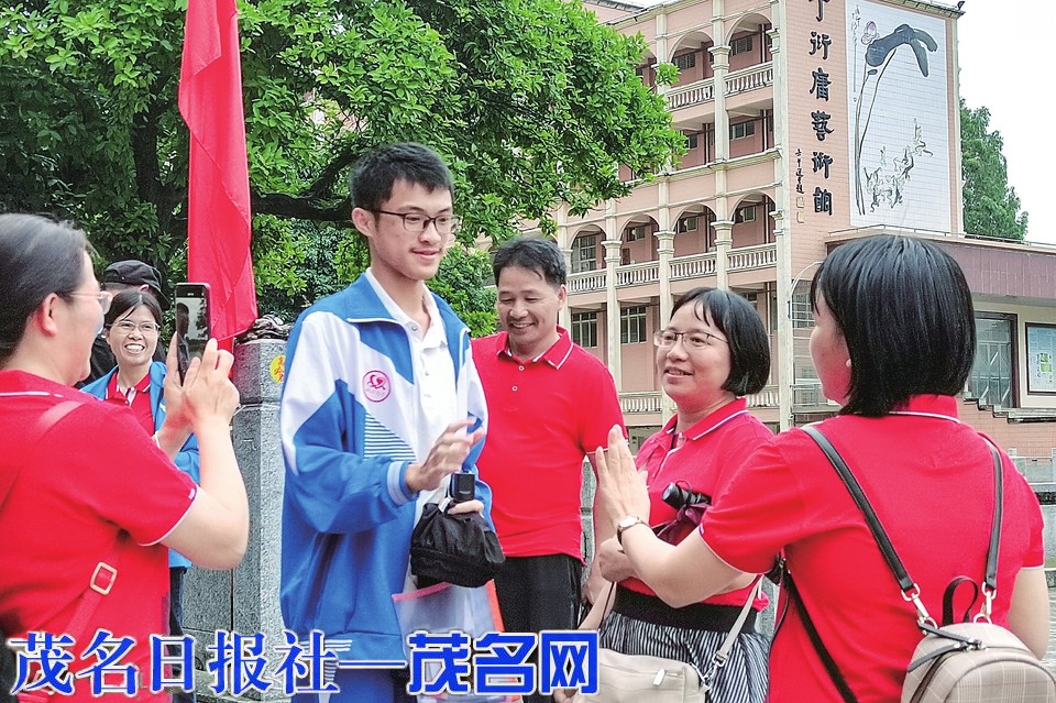 考生与老师开心击掌。 茂名日报社全媒体记者吴昊摄