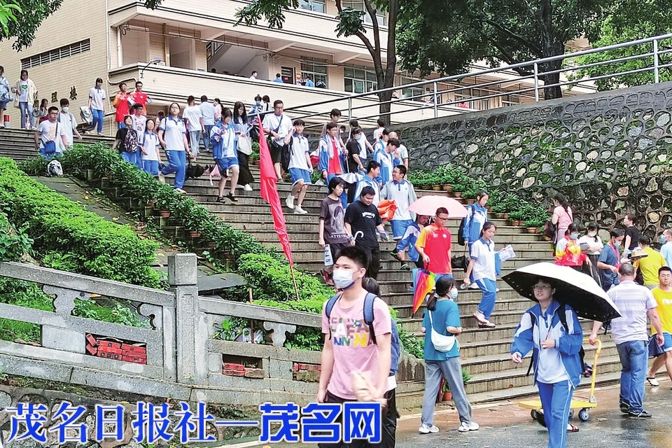 考生陆续走出考场。茂名日报社全媒体记者吴昊摄