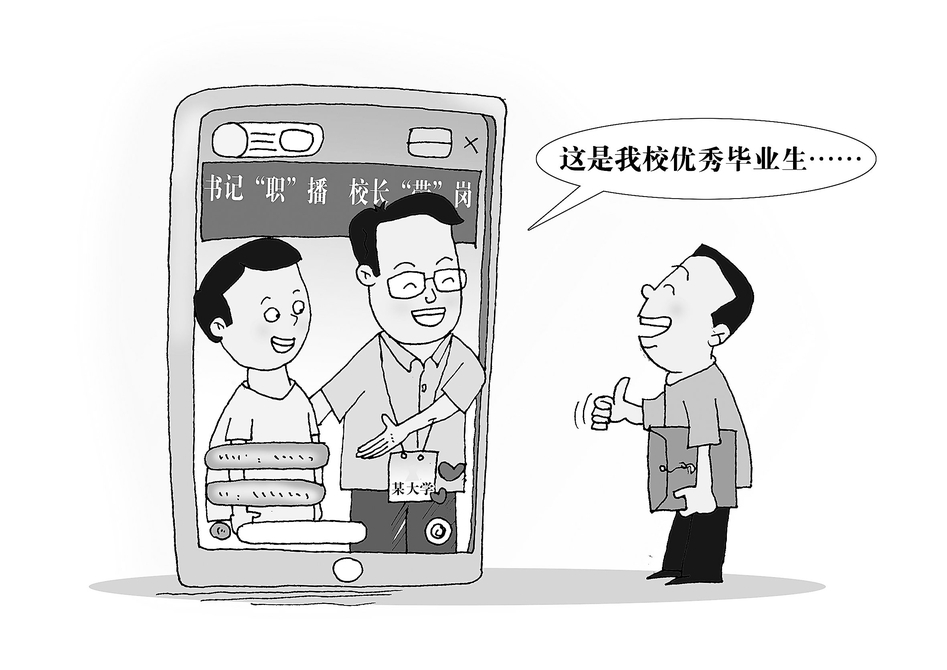 受直播带货的启发,今年,不少高校想方设法助力应届生就业。上海海洋大学党委书记开启“直播带人”模式,校领导当主播,在直播会场中直接向用人单位推荐学生。广东科贸职业学院举办“书记‘职’播,校长‘带’岗”活动,书记携毕业生亮相直播间,亲自为学生代言。苏州城市学院的党委书记和校长也化身主播为毕业生代言,向企业“推销”本校毕业生。据报道,这一模式目前已成为高校推介应届生的“主流”。尤其在近期的就业冲刺攻坚阶段,直播越来越频繁。“直播带人”就是学校组织网上招聘会,在用人单位和高校毕业生“双向选择”中,增加学校领导的加持推荐、针对具体学生的个性化推介,以此给求职的毕业生进一步面试的机会。由党委书记、校长“直播带人”,本质上是为了向用人单位更充分地介绍本校毕业生,获得更多“人才订单”,也以此鼓励毕业生积极做好就业规划。(来源:光明日报)