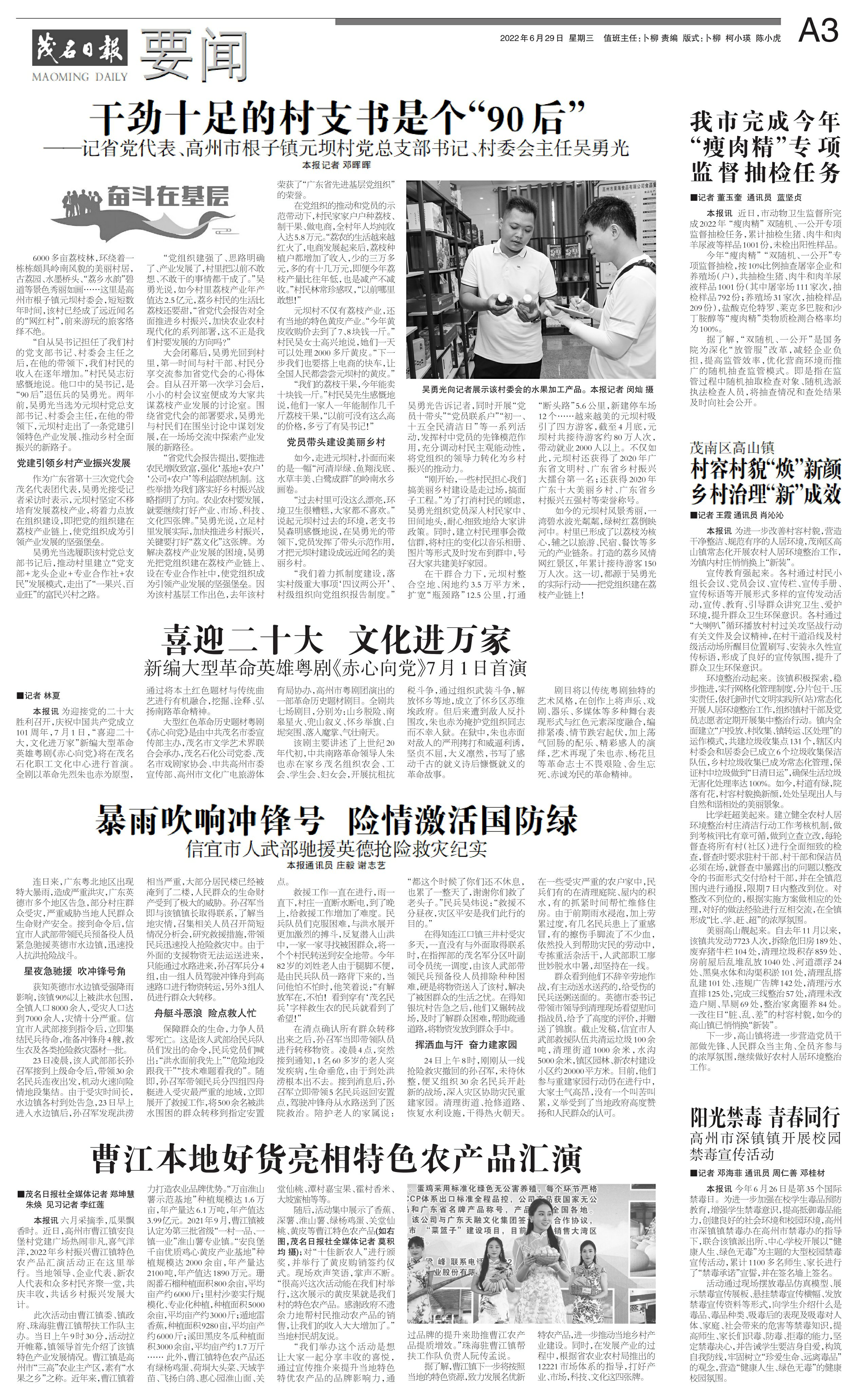 在得知连江口镇三井村受灾多天,一直没有与外面取得联系时,在指挥部的茂名军分区叶副司令员统一调度,由该人武部带领民兵预备役人员排除种种困难,硬是将物资送入了该村,解决了被困群众的生活之忧。在得知银坑村告急之后,他们又辗转战场,及时了解群众困难,帮助疏通道路,将物资发放到群众手中。