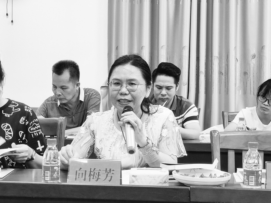 向梅芳是信宜市文联兼职副主席、文化馆副研究馆员,国家二级作家,省作家协会会员,省文学院签约作家,鲁迅文学院广东作家班学员。她热情分享了作品创作情况。《向家湾》创作从最早期的酝酿开始前后历时近十年,讲述一个农民家族五代人的奋斗坎坷、爱恨悲欢和人生传奇。小说的叙事时间从1920年到2020年,地域跨度从粤西南到湘西北。整部小说通过一个农民家族的百年兴衰折射中国百年时代变迁和中国乡土文化传承的历史命运。目前,《向家湾》正在500多家图书馆上架。