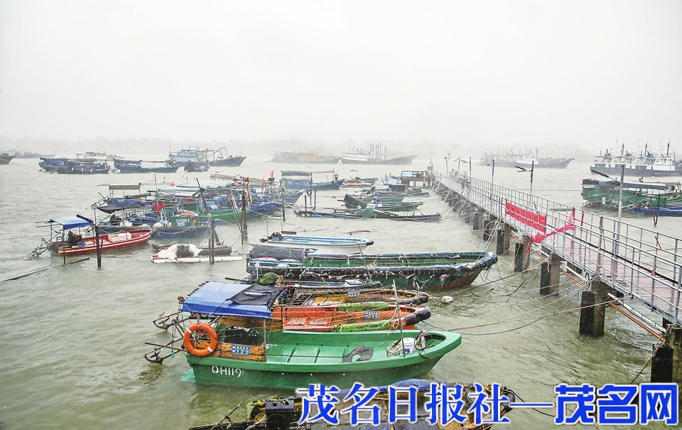 ▲勤海码头的渔船已全部回港。茂名日报社全媒体记者刘付思明摄