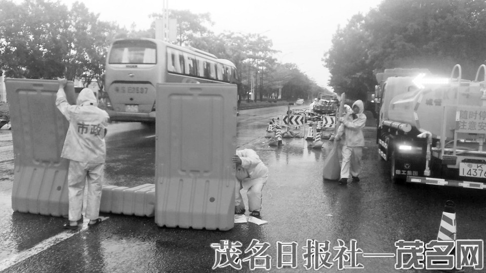 本报讯昨日,台风“暹芭”在电白沿海区域登陆。受其环流影响,我市部分地区出现中到大雨、局部暴雨或大暴雨。市城管执法局全员出动,700多名干部职工全力守护着人民群众生命安全和城市平稳有序运行。