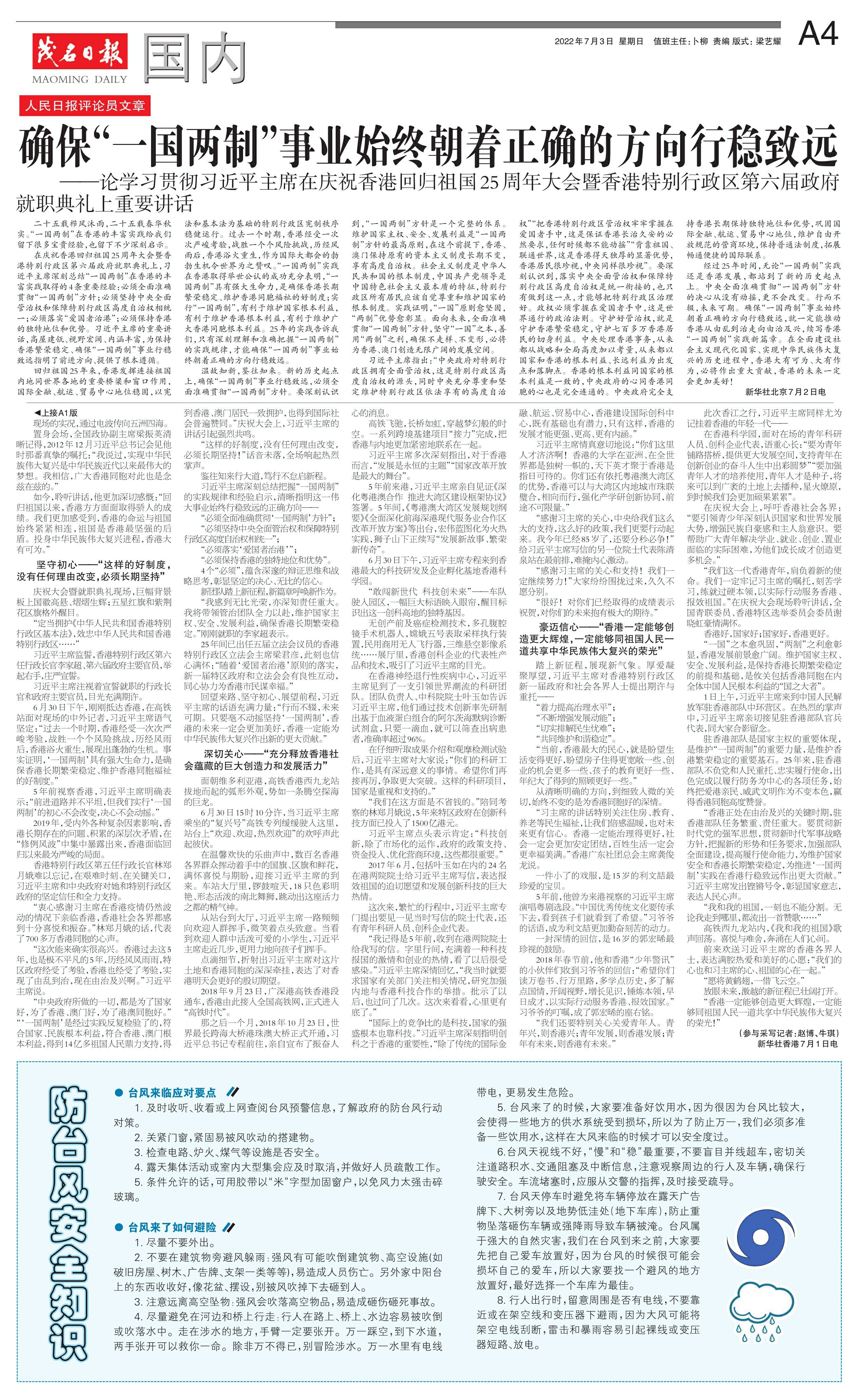 确保“一国两制”事业始终朝着正确的方向行稳致远