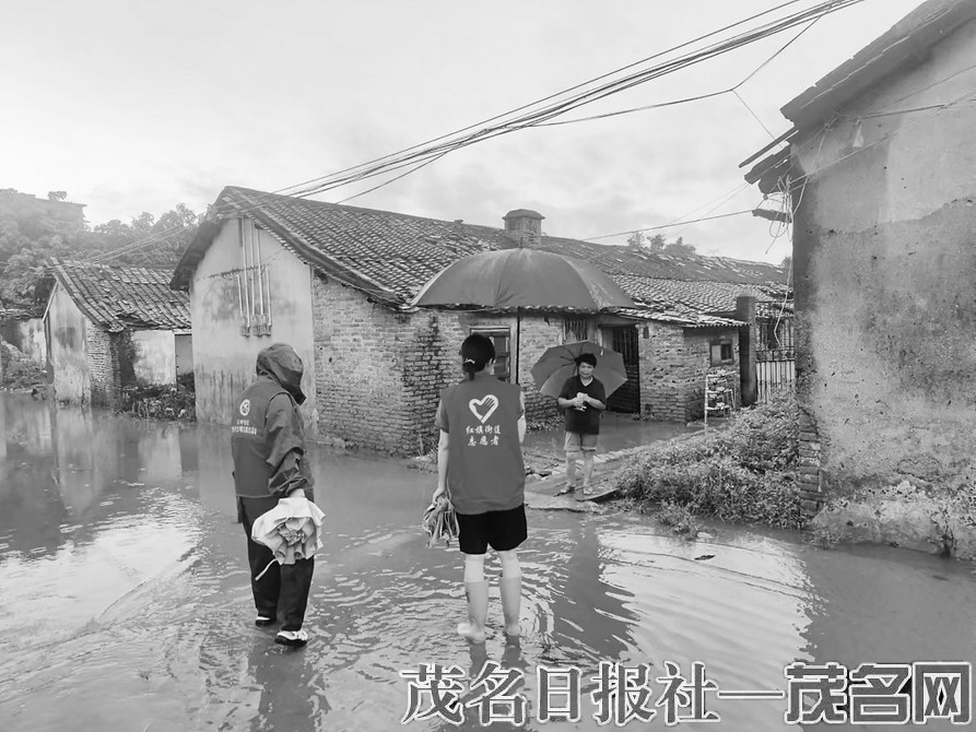 茂南区红旗街道党员志愿者头顶风雨脚踩泥