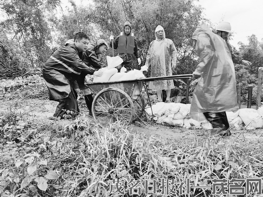 电白区沙琅全镇共产党员出动,开启“连轴转”模式,奋力抗洪抢险(如右图)。