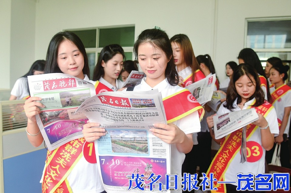 当日下午,选手们来到茂名日报社,首先参观了茂名晚报、茂名日报及新媒体中心办公区域,了解报纸的采编流程及新媒体的发布等。在参观过程中,选手们还饶有兴趣地翻阅了当天的报纸,大家纷纷被报纸中关于冼夫人文化宣传大使总决赛相关的稿件所吸引。