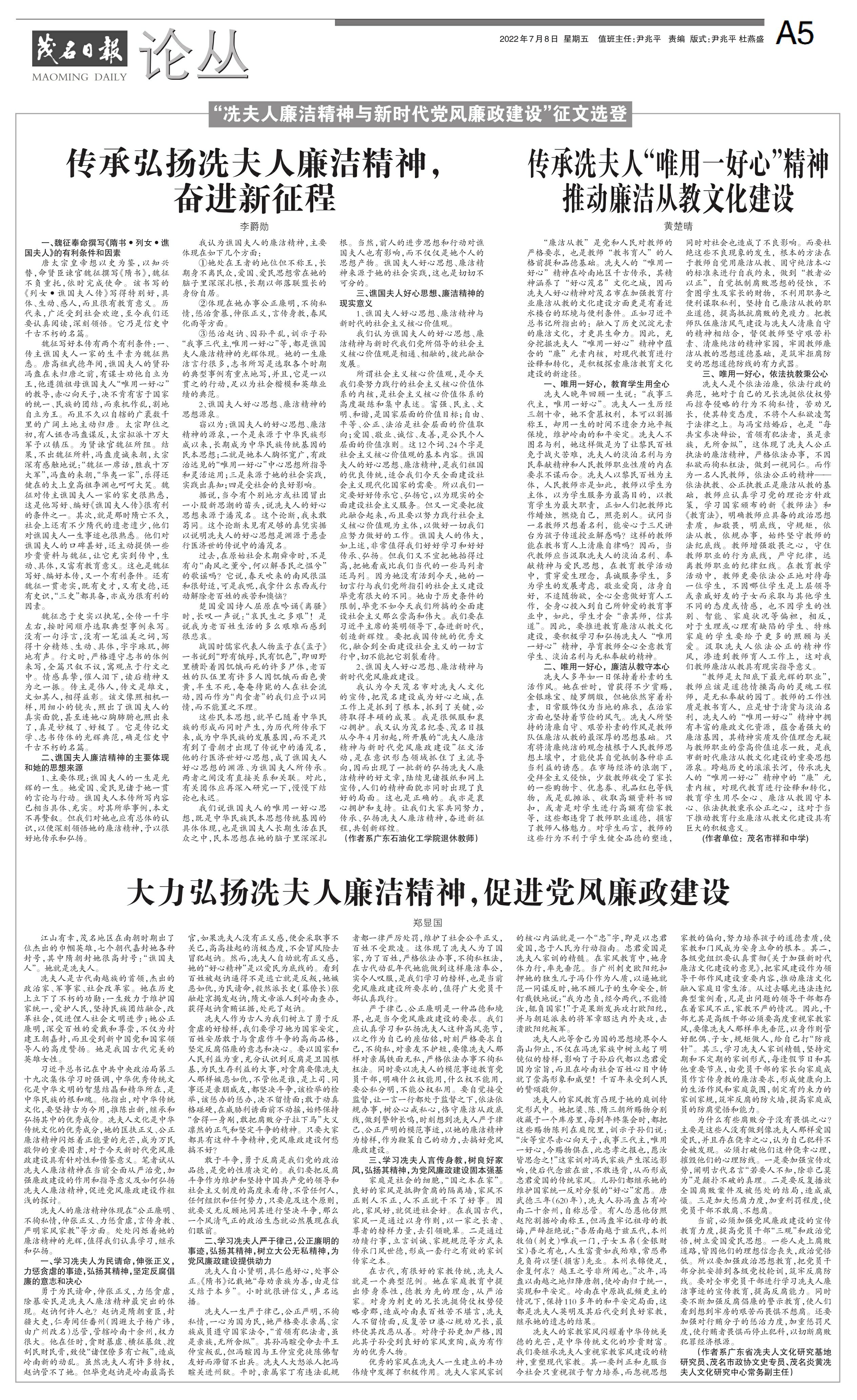 传承冼夫人“唯用一好心”精神推动廉洁从教文化建设