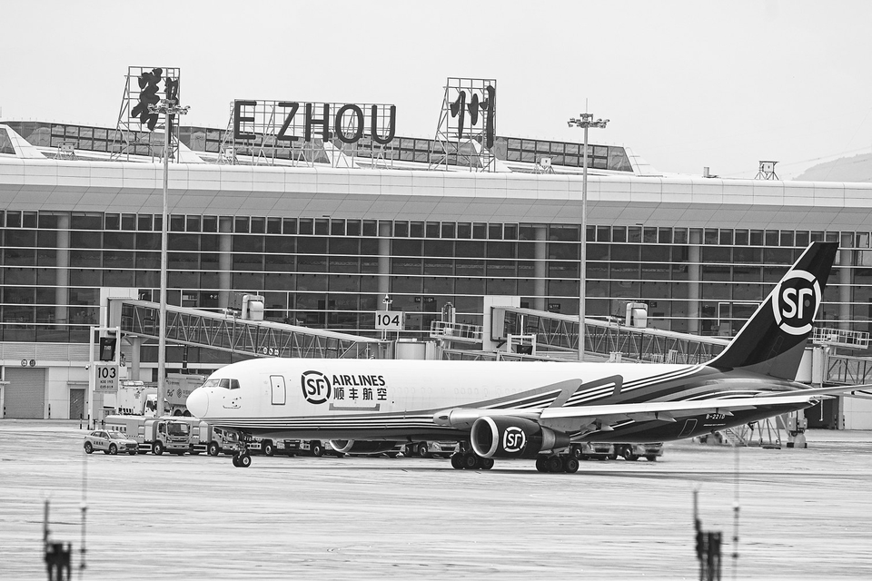 7月17日,顺丰航空的全货机在鄂州花湖机场滑行。新华社记者肖艺九摄