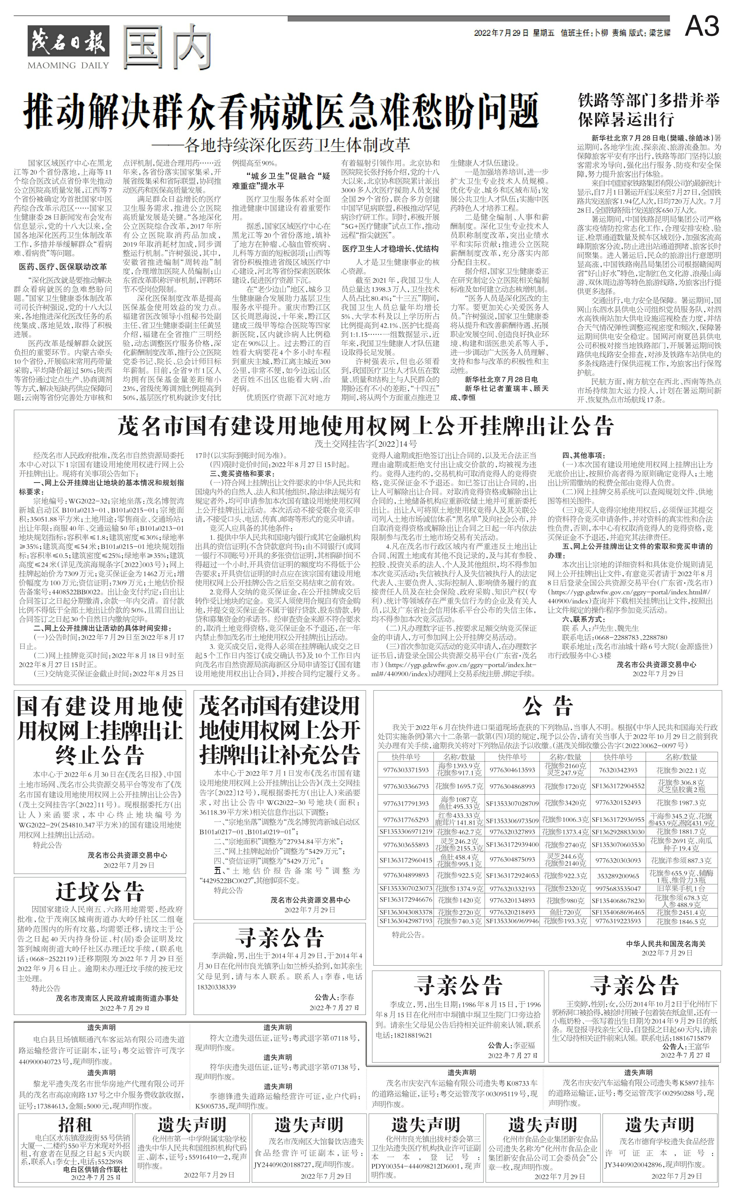 茂名市国有建设用地使用权网上公开挂牌出让公告