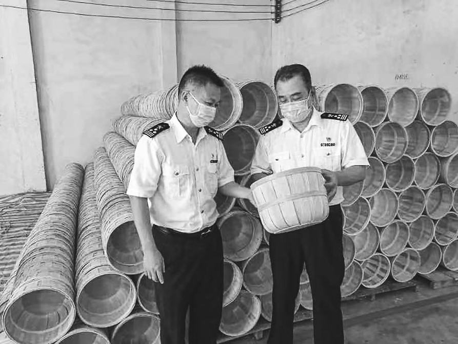 海关关员对出口竹编制品进行查验。通讯员李俊杰摄