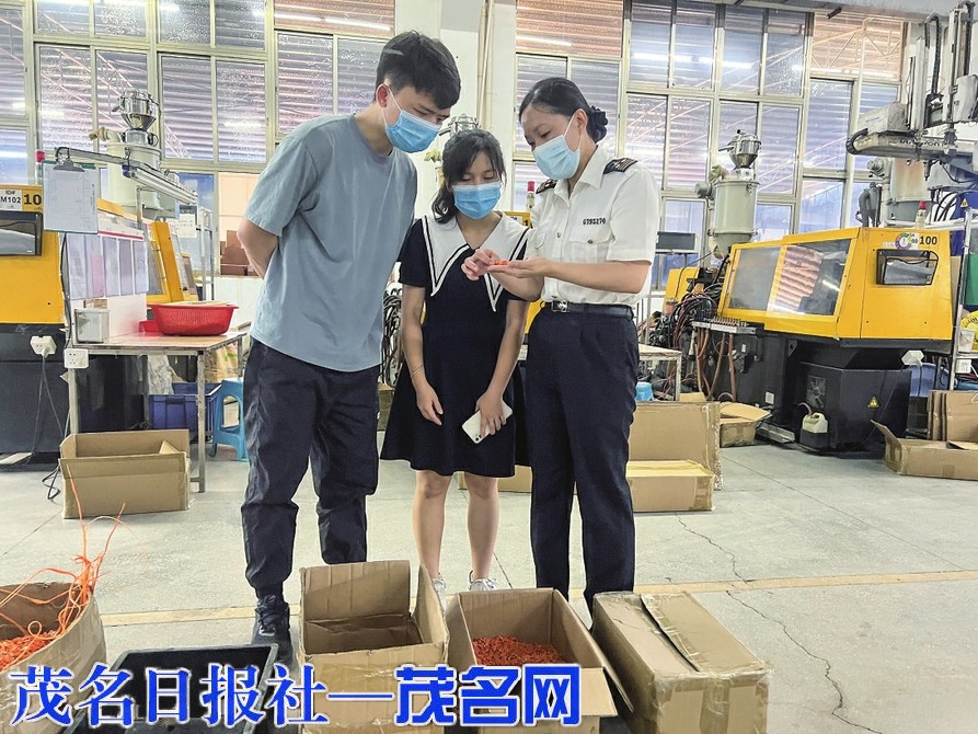 茂名海关关员到广东翔天汽车智能化有限公司现场讲解关税减让政策。 通讯员缪迎晖摄