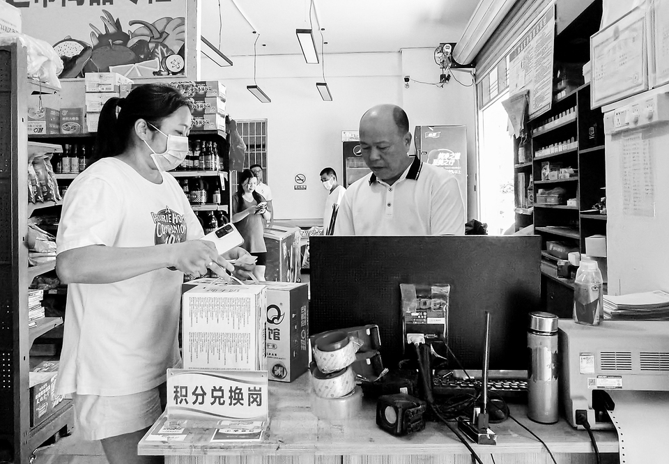 村民前往积分超市兑换日用品。本报记者周泽佳摄