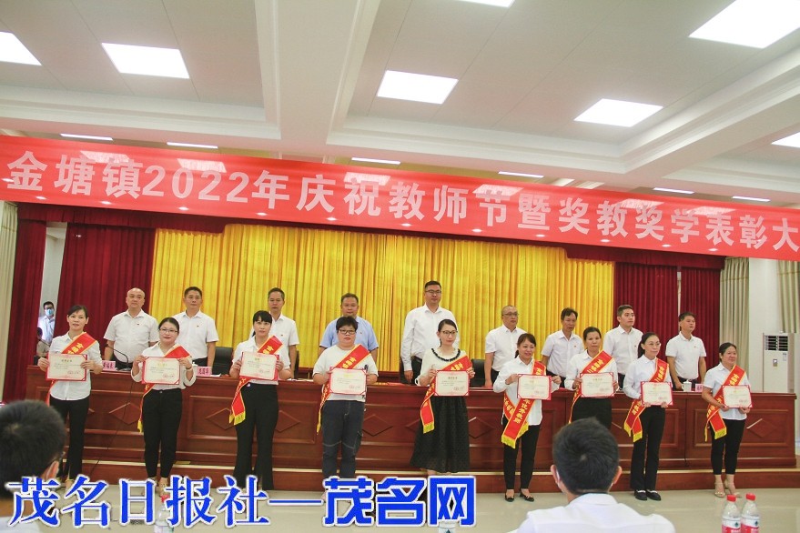为进一步弘扬尊师重教、奖教助学之风,9月6日,金塘镇举行2022年庆祝教师节暨奖教奖学表彰大会,表彰奖励一年来涌现出的优秀校长(园长)、教师和品学兼优的学生,以奖促教,以奖促学。茂南区政府、区教育局的主要领导,金塘镇委书记黄建业出席大会并作讲话。