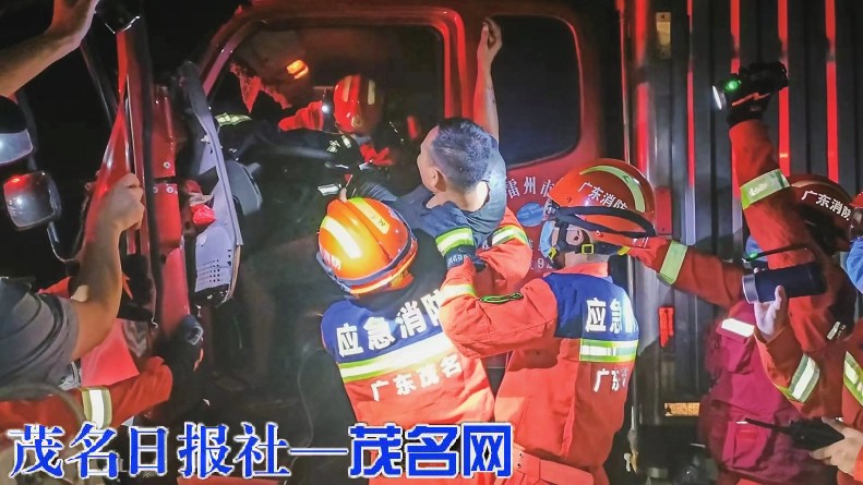 本报讯 昨日凌晨3时许,茂南消防大队袂花消防救援站接到指挥中心警情:沈海高速3402段茂名往湛江方向900米处发生一起两车追尾交通事故,有一名司机被困。袂花消防救援站迅速出动,成功救援。