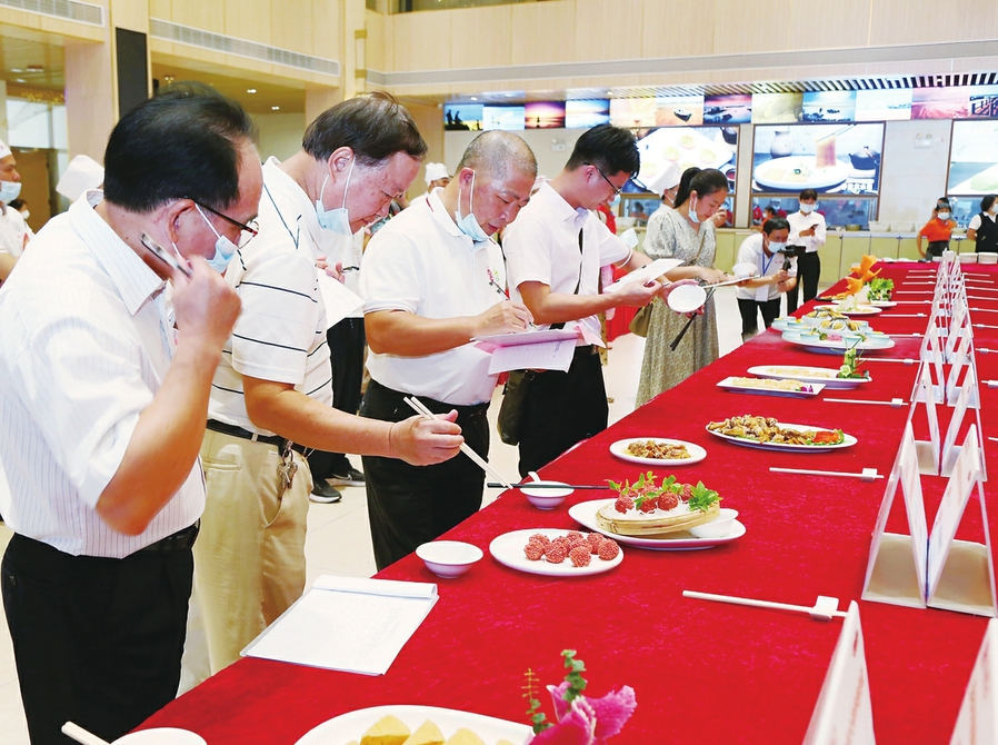 评委在试食评分。李颜东摄
