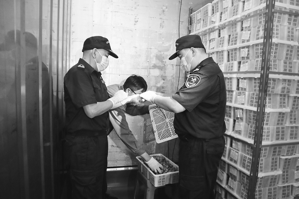 茂名海关关员正在监管出口龙眼。通讯员唐梦妍摄