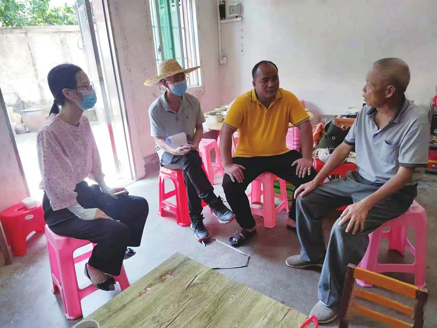 林嘉文(右二)到群众家中开展平安大走访活动,为群众解决困扰。通讯员钟小容摄