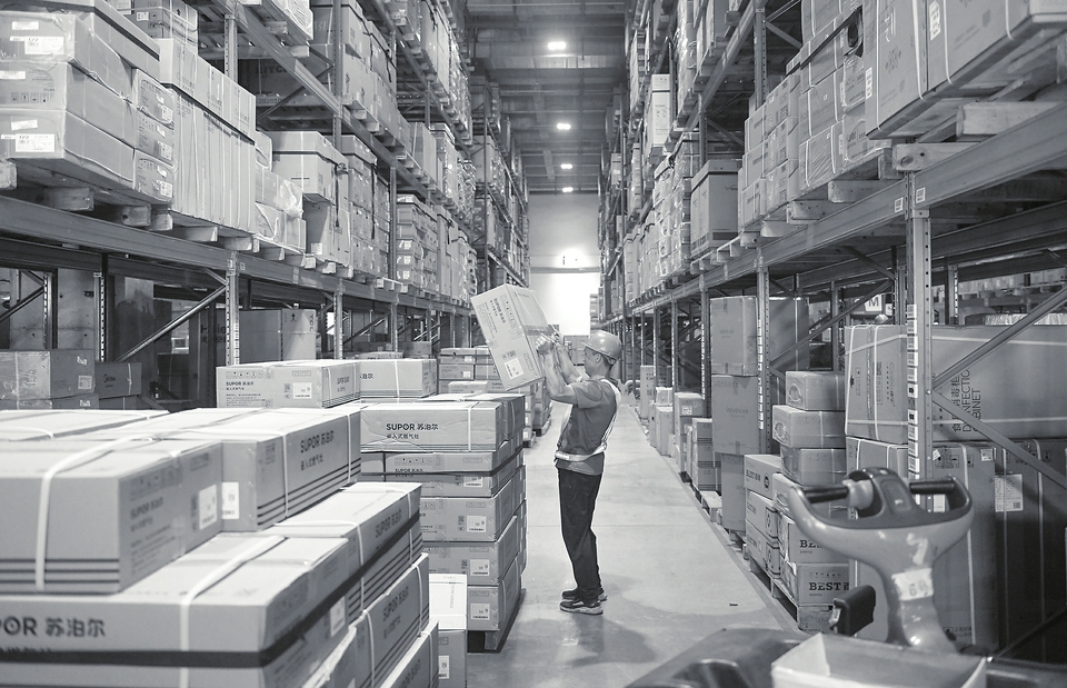 工作人员在位于广州市开发区的京东仓库里搬运快递包裹(9月15日摄)。 据广东省邮政管理局监测数据显示,截至9月18日,今年广东省快递业务量已突破200亿件,达到200.5亿件,同比增长7.9%。 新华社记者卢汉欣摄