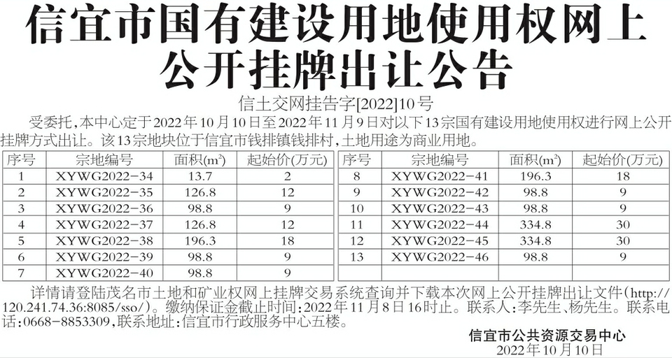 信宜市国有建设用地使用权网上公开挂牌出让公告