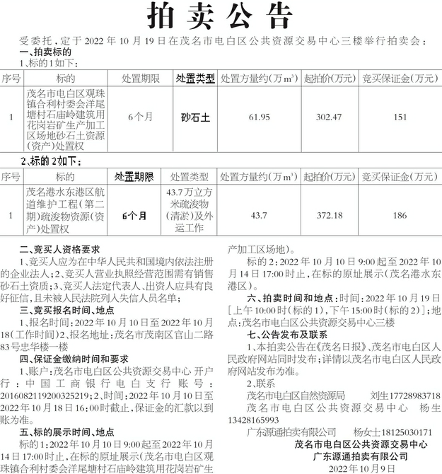 茂名市国有建设用地使用权网上公开挂牌出让补充公告