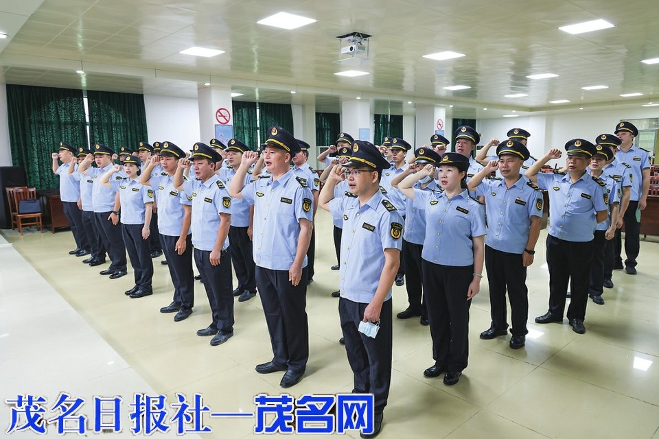 仪式上,全体执法人员统一穿着新的夏季制式服装,昂首肃立、齐唱国歌。随后,在该局分管领导的带领下,高举右拳向宪法庄严宣誓:“我宣誓:忠于中华人民共和国宪法,维护宪法权威,履行法定职责,忠于祖国、忠于人民……”