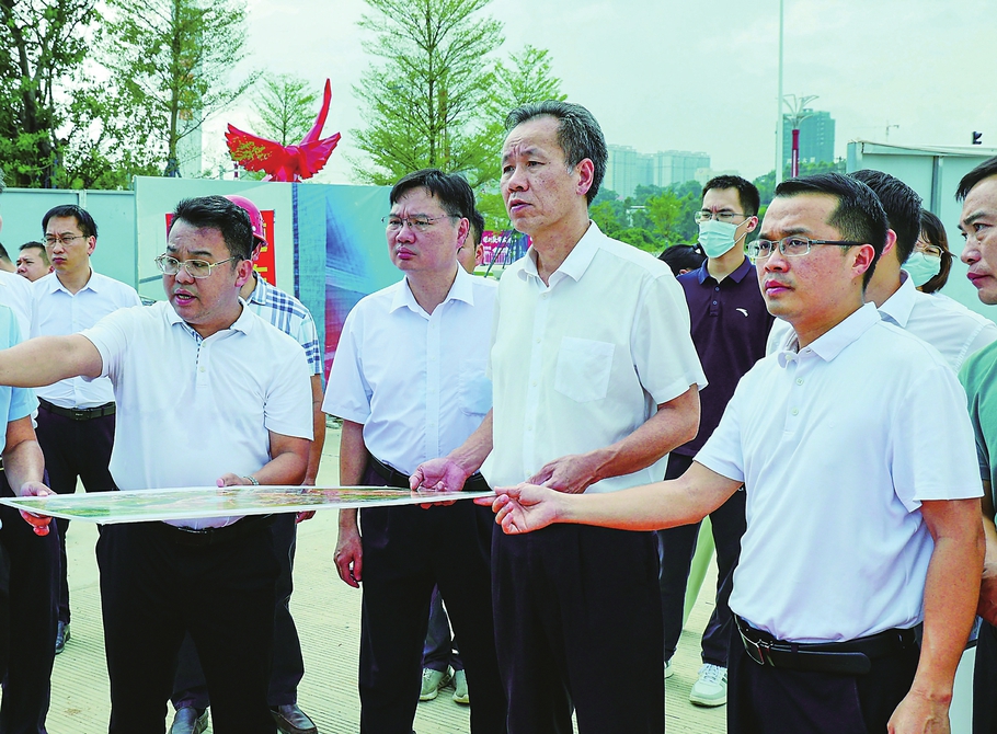 王土瑞一行先后前往中力恒实业有限公司铝型材和不锈钢冷轧板生产基地、高盛实业有限公司装配式建筑工程项目现场、高州市丝苗米产业园核心区、蒲康工业园、高州市近郊农旅好心产业融合发展带项目现场、高州市植物园、潘州公园、乐天高新科技(高州)产业园项目现场、高州农产品加工冷链物流产业园建设项目现场、冼夫人乡村振兴高凉墟文化产业示范带建设现场,通过现场察看、查阅图纸、召开座谈会、听取工作汇报等方式,详细了解各项目建设进度、征地拆迁、资源配备、安全生产措施落实、投产达能效益等情况,询问项目建设过程中遇到的困难问题,现场协调解决,并提出指导意见。