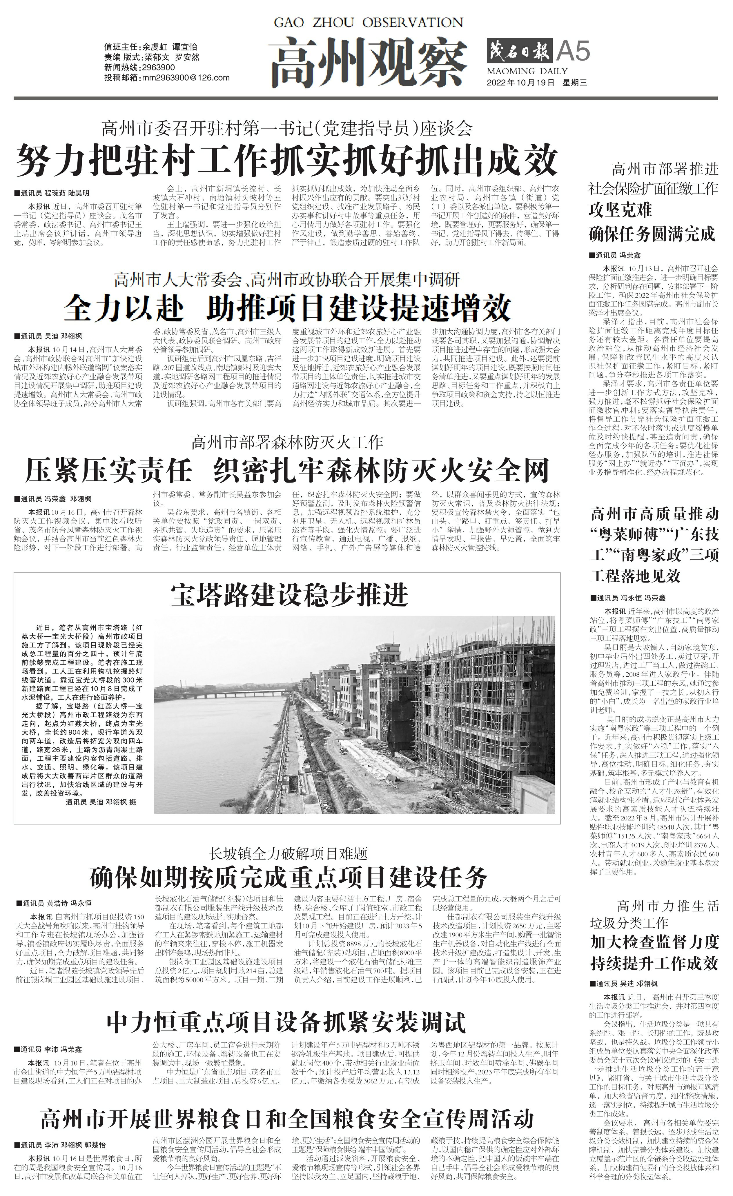 近日,笔者从高州市宝塔路(红荔大桥—宝光大桥段)高州市政项目施工方了解到,该项目现阶段已经完成总工程量的百分之四十,预计年底前能够完成工程建设。笔者在施工现场看到,工人正在利用钩机挖掘路灯线管坑道。靠近宝光大桥段的300米新建路面工程已经在10月8日完成了水泥铺设,工人在进行路面养护。