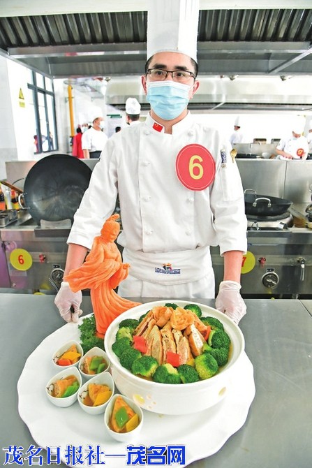 他总是带着两把刀到课堂上课,一把是片刀,一把是西餐主刀。他是一名厨师,也是一名烹饪教师,更是由茂名市嘉豪轩食品有限公司总冠名的市首届“高凉菜大师”评选活动的十强选手,他就是叶易泉。