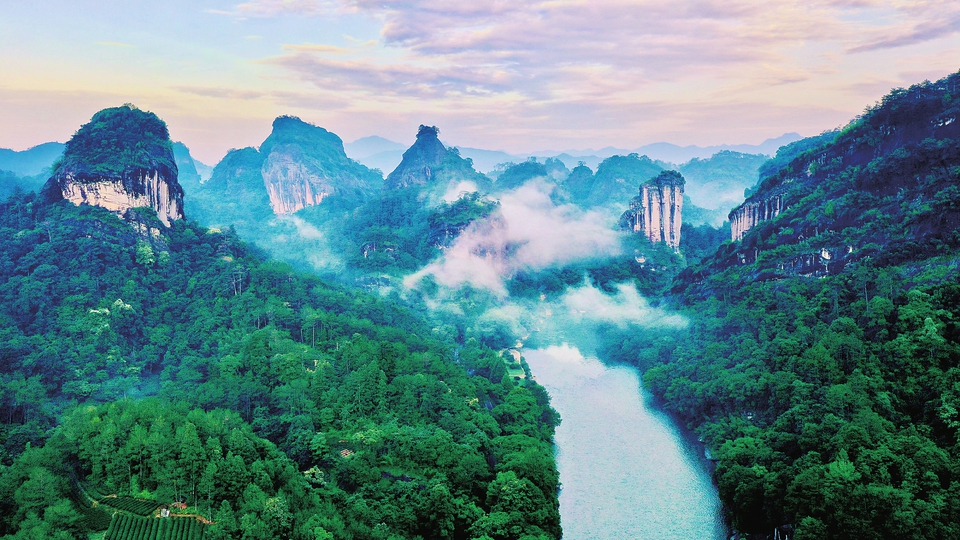 这是福建武夷山九曲溪两岸的丹霞景观(2022年6月7日摄,无人机照片)。新华社记者姜克红摄