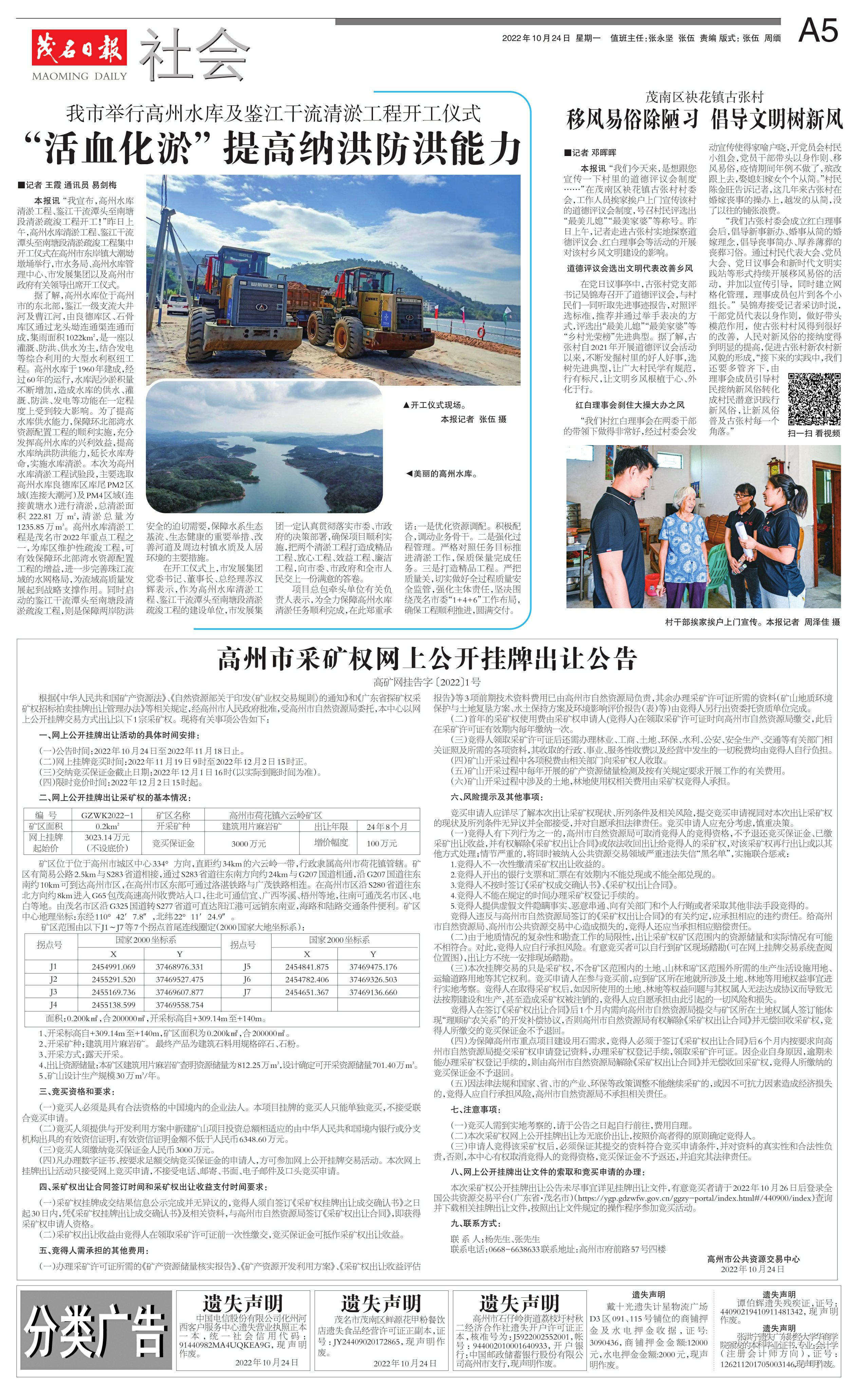 本报讯“我宣布,高州水库清淤工程、鉴江干流潭头至南塘段清淤疏浚工程开工!”昨日上午,高州水库清淤工程、鉴江干流潭头至南塘段清淤疏浚工程集中开工仪式在高州市东岸镇大潮坳墩埇举行,市水务局、高州水库管理中心、市发展集团以及高州市政府有关领导出席开工仪式。