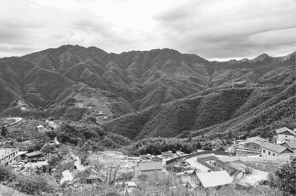现场可以看到在竹海里的近200栋民房搭起了大型脚手架,正在进行着“穿衣戴帽”工程。