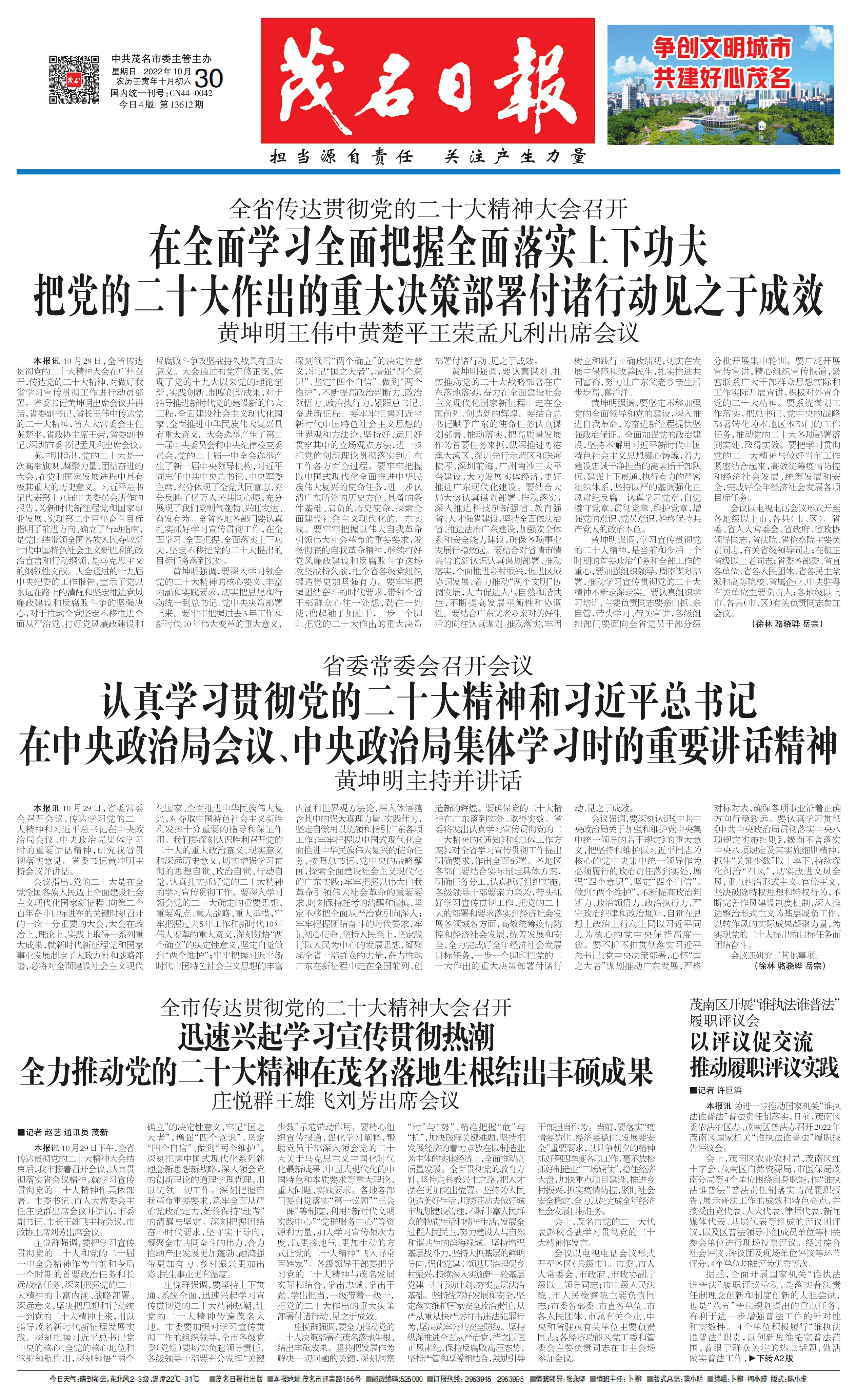 迅速兴起学习宣传贯彻热潮 全力推动党的二十大精神在茂名落地生根结出丰硕成果