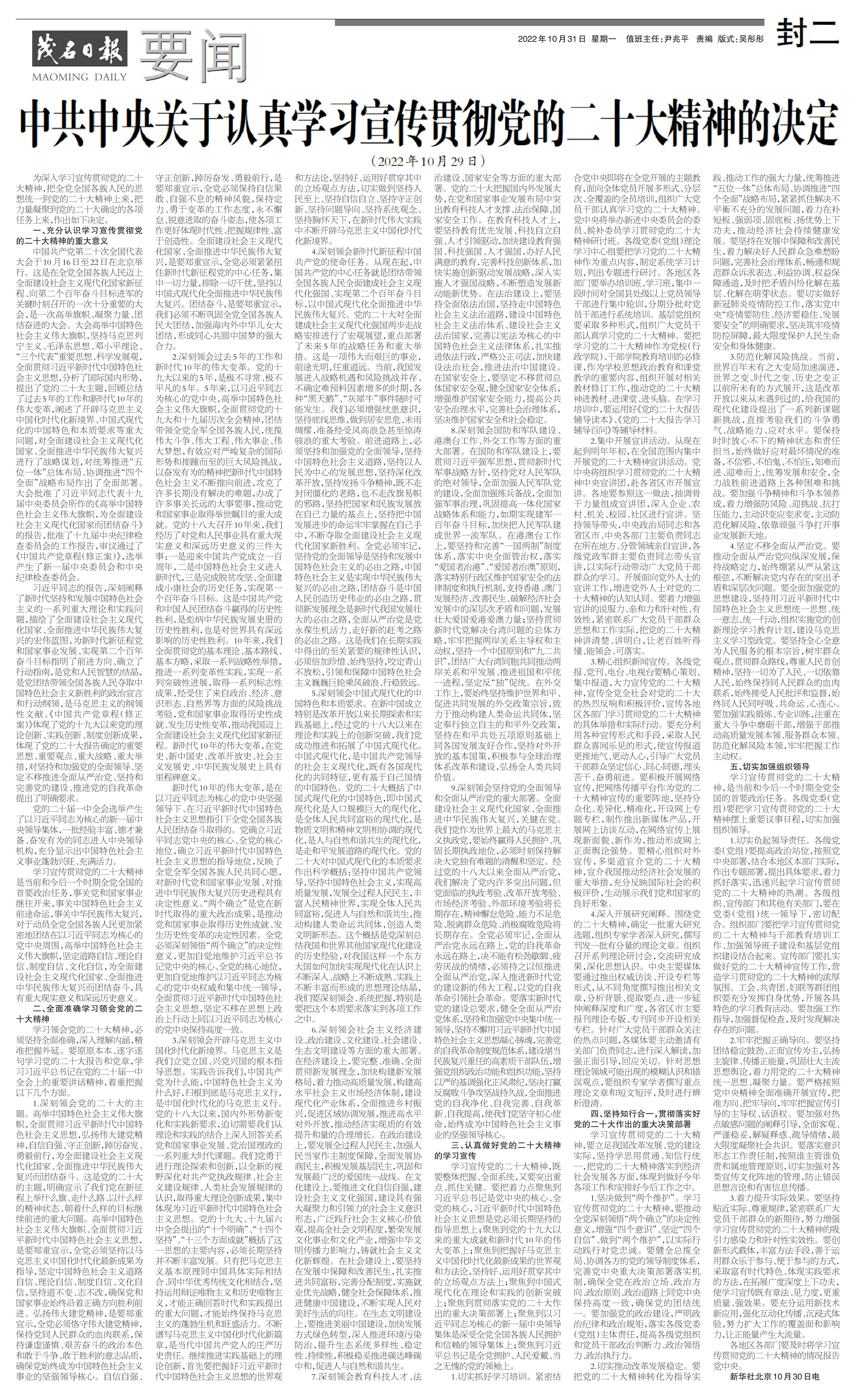 中共中央关于认真学习宣传贯彻党的二十大精神的决定