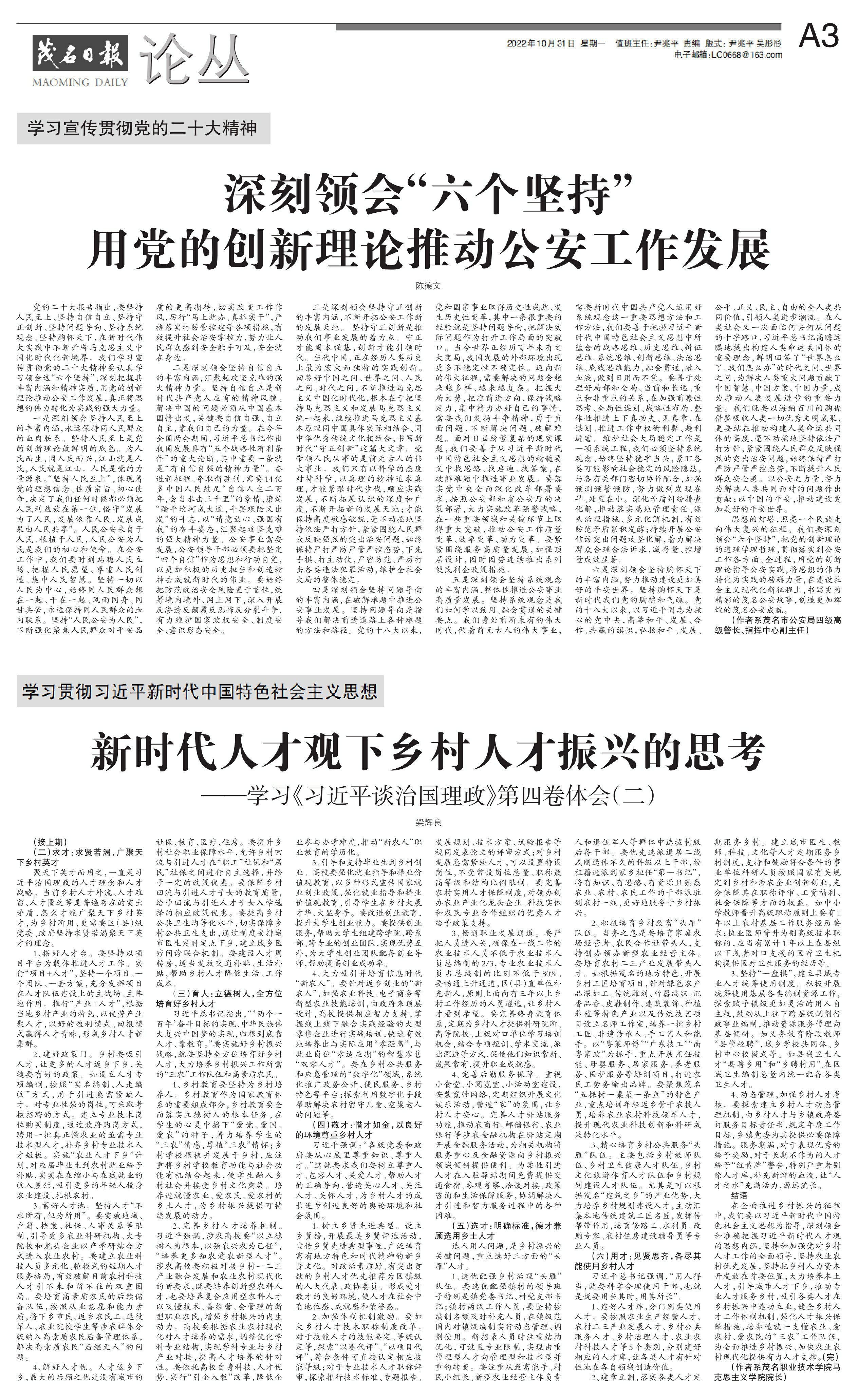 深刻领会“六个坚持”用党的创新理论推动公安工作发展