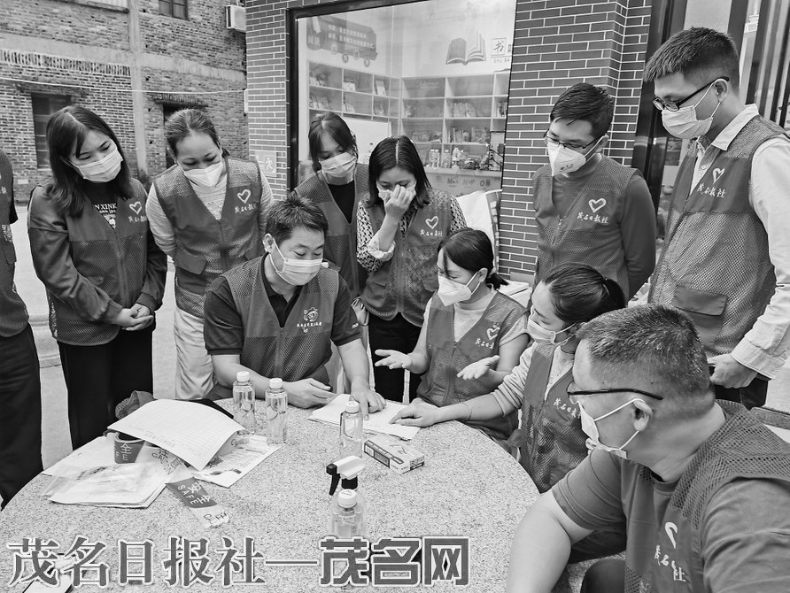 茂名日报社的新闻工作者志愿服务队坚守在防疫一线。
