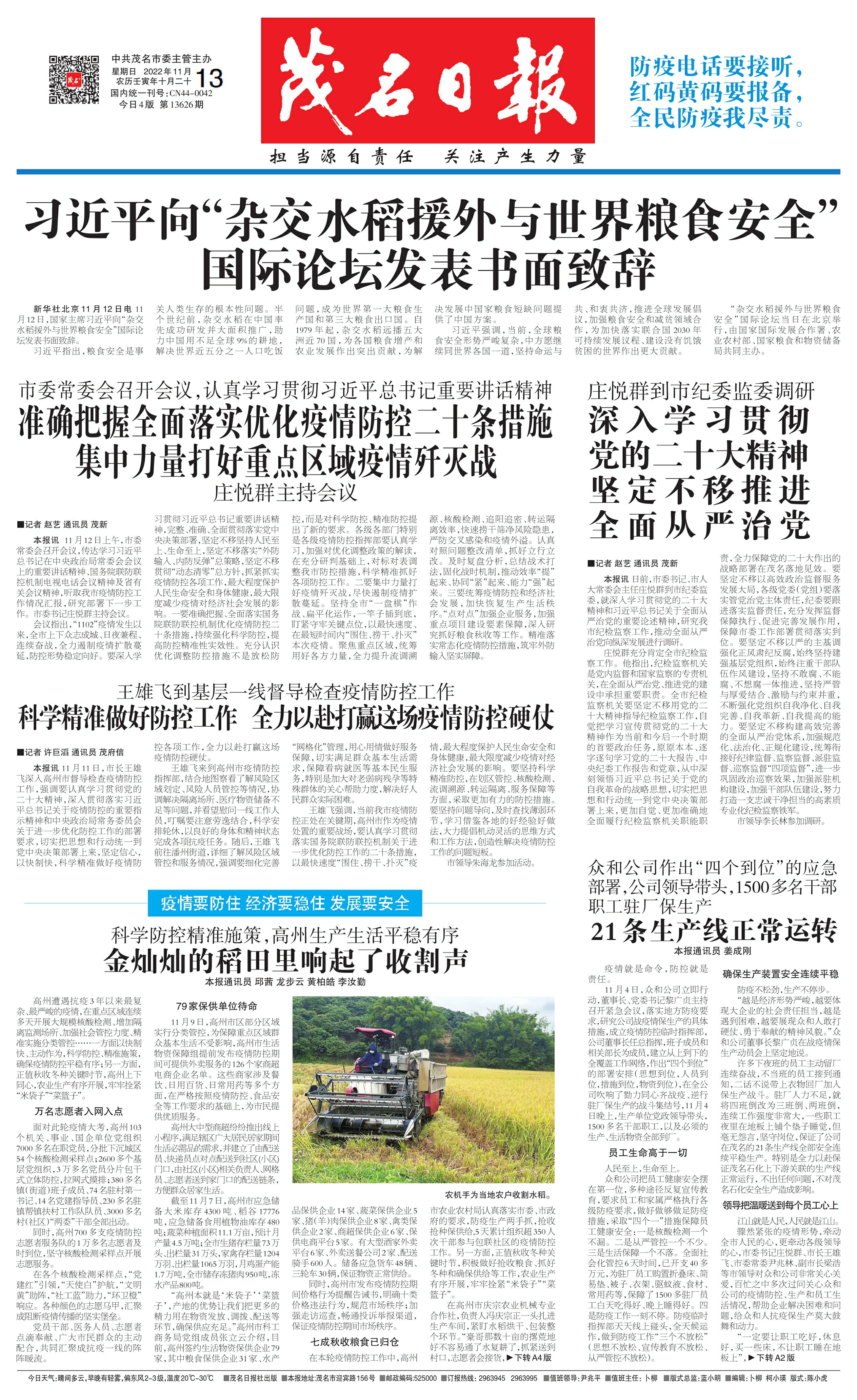 习近平向“杂交水稻援外与世界粮食安全”国际论坛发表书面致辞