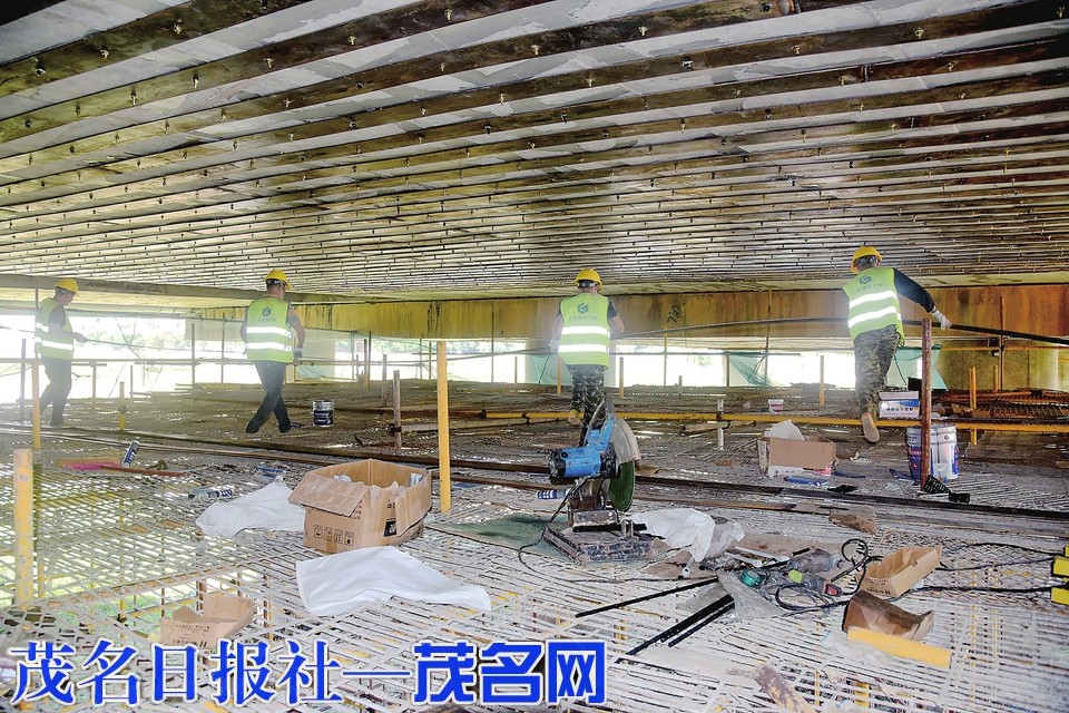 近日,记者在市区竹园桥加固工程施工现场看到,施工人员正在进行桥梁底部钢板铺装粘贴施工。据施工方介绍,该工程预计12月30日前完成。茂名日报社全媒体记者陈国汉摄