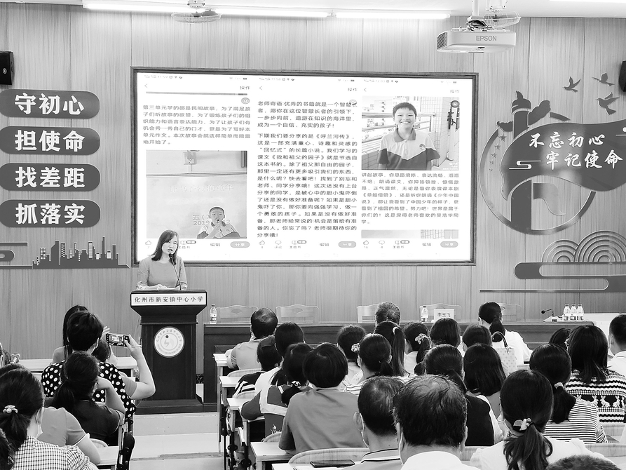 本报讯最近,由化州市委宣传部、化州市文明办与化州市教育局联合举办的2022年化州市先进模范基层宣讲系列活动之“广东好人”李玉飞先进事迹宣讲报告会在新安镇中心小学进行,新安镇小教系统各学校教师代表70多人参加活动。