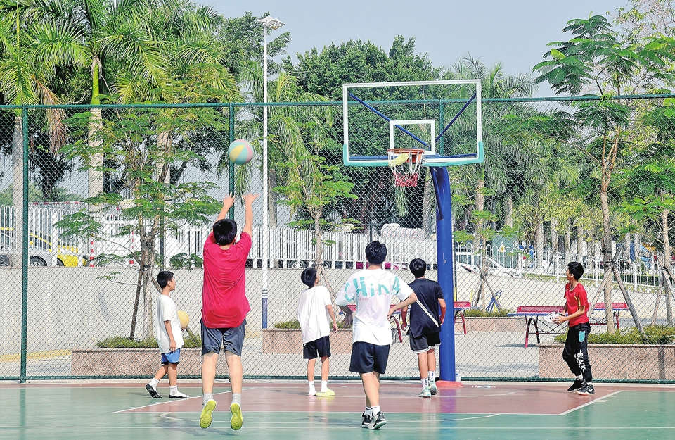 日前,记者在市区江东北路社区体育公园篮球场看到,篮球爱好者正在打篮球,尽情享受运动的快乐,公园成了市民家门口的“运动乐园”。