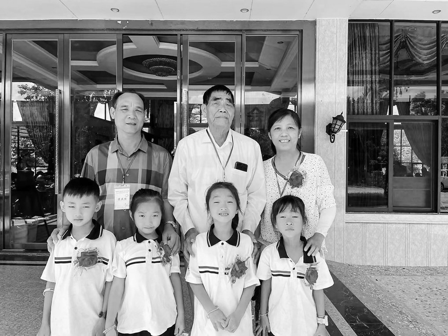 木偶戏师徒合照,后排左起:梁亚胜、梁东兴、赵健勇。