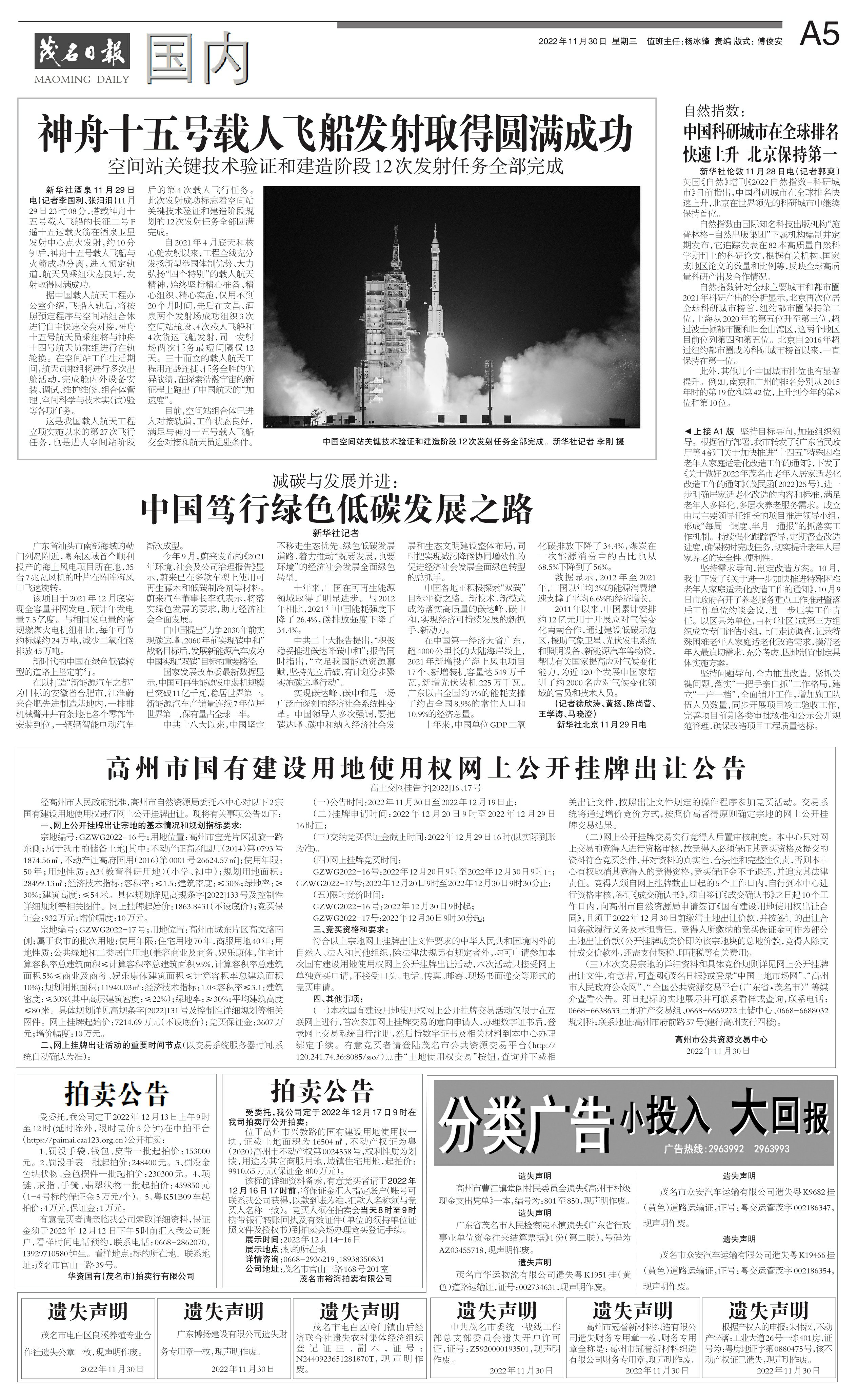 神舟十五号载人飞船发射取得圆满成功