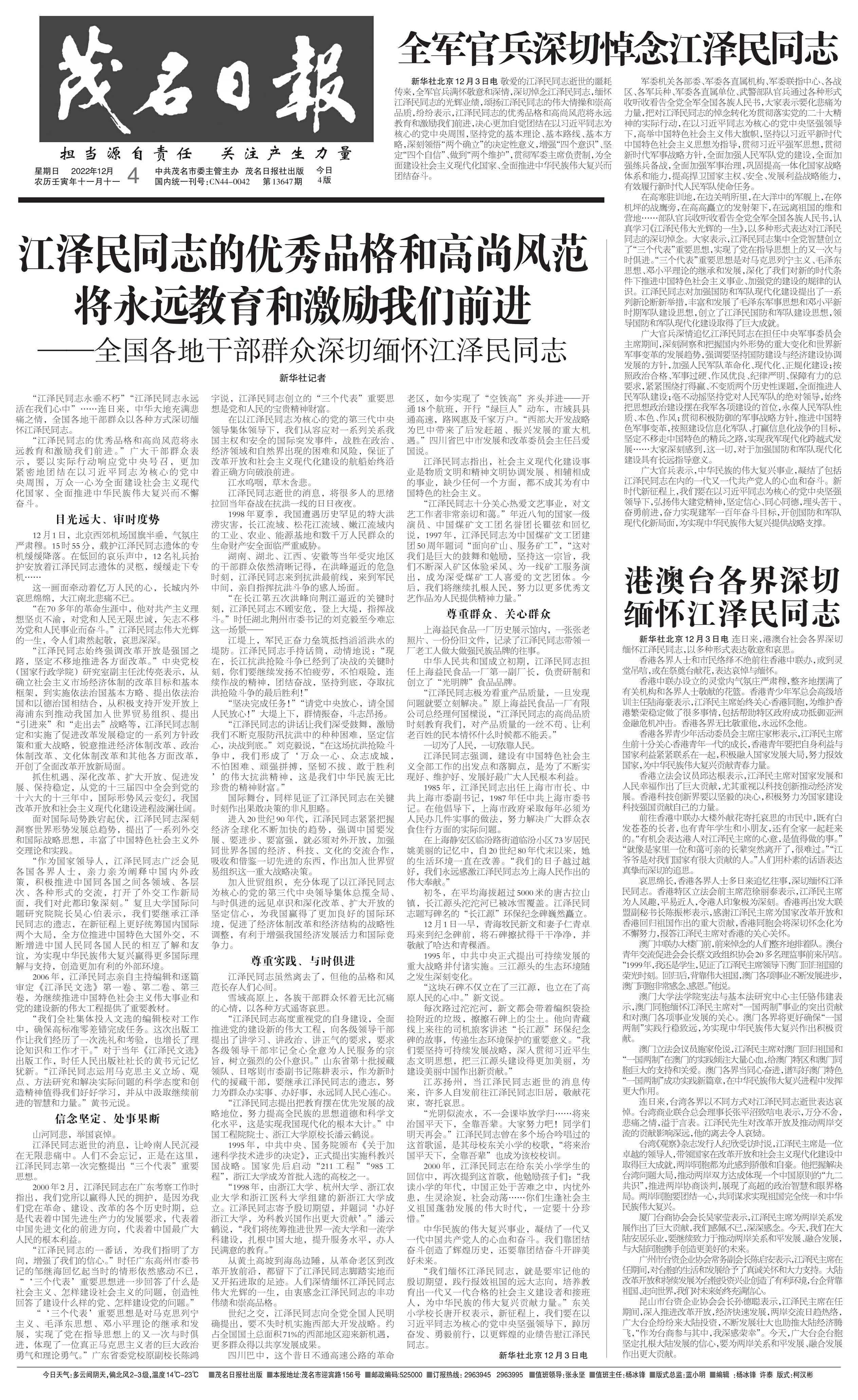 全军官兵深切悼念江泽民同志