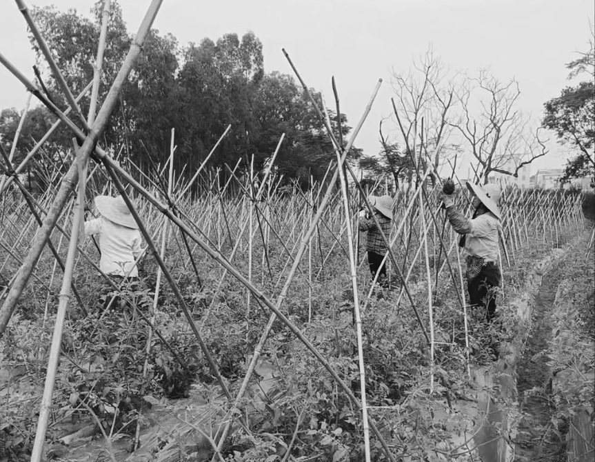 村民在种植基地忙碌着。