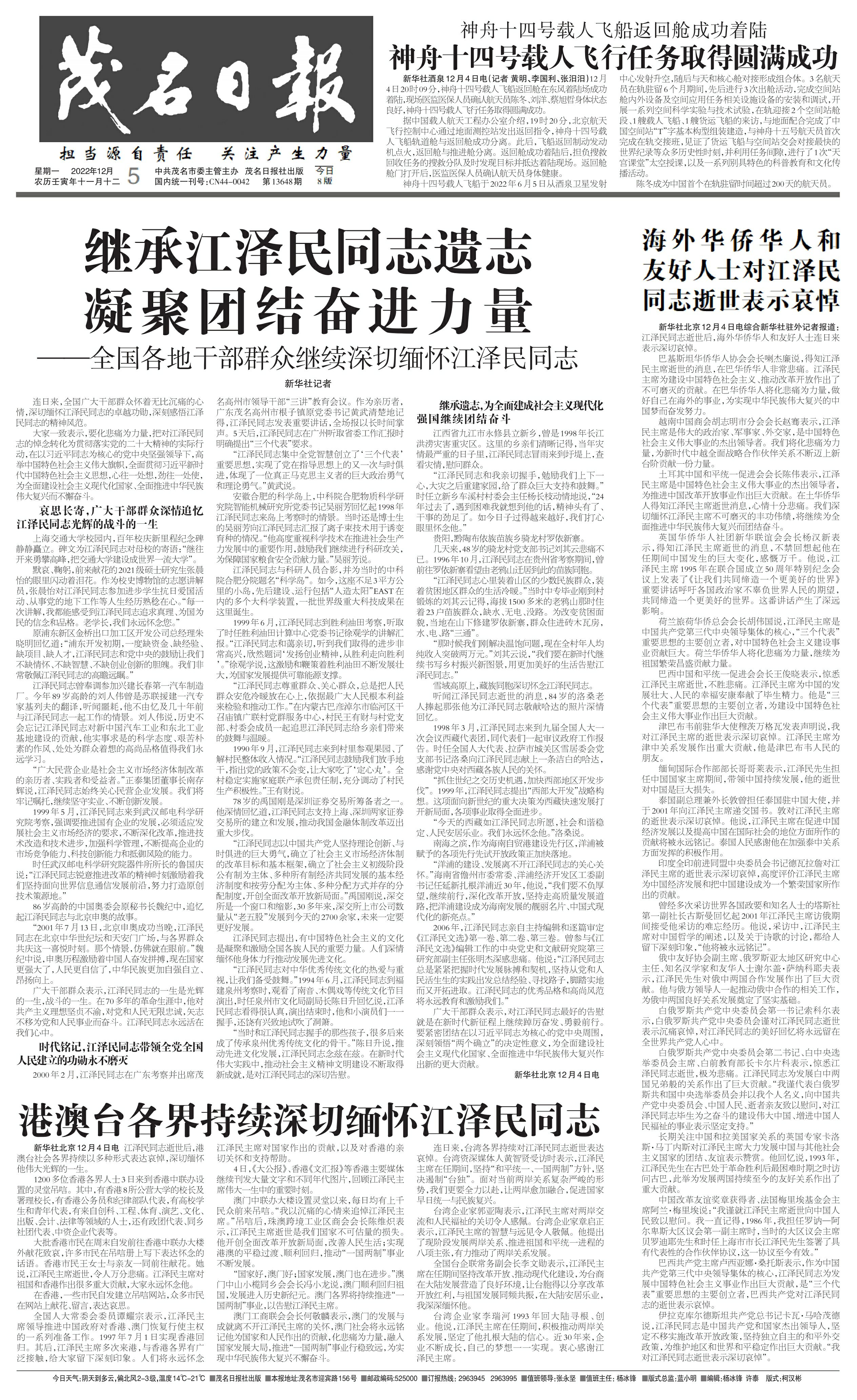 继承江泽民同志遗志 凝聚团结奋进力量