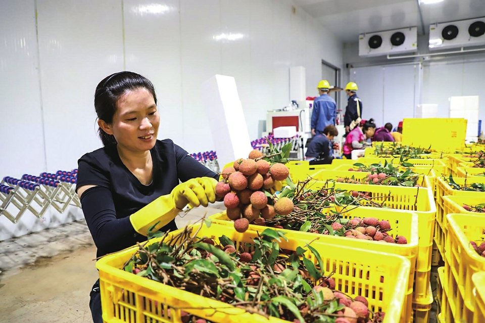 茂名高州供电局根子供电所工作人员为荔枝销售商冷库用电提供上门服务。