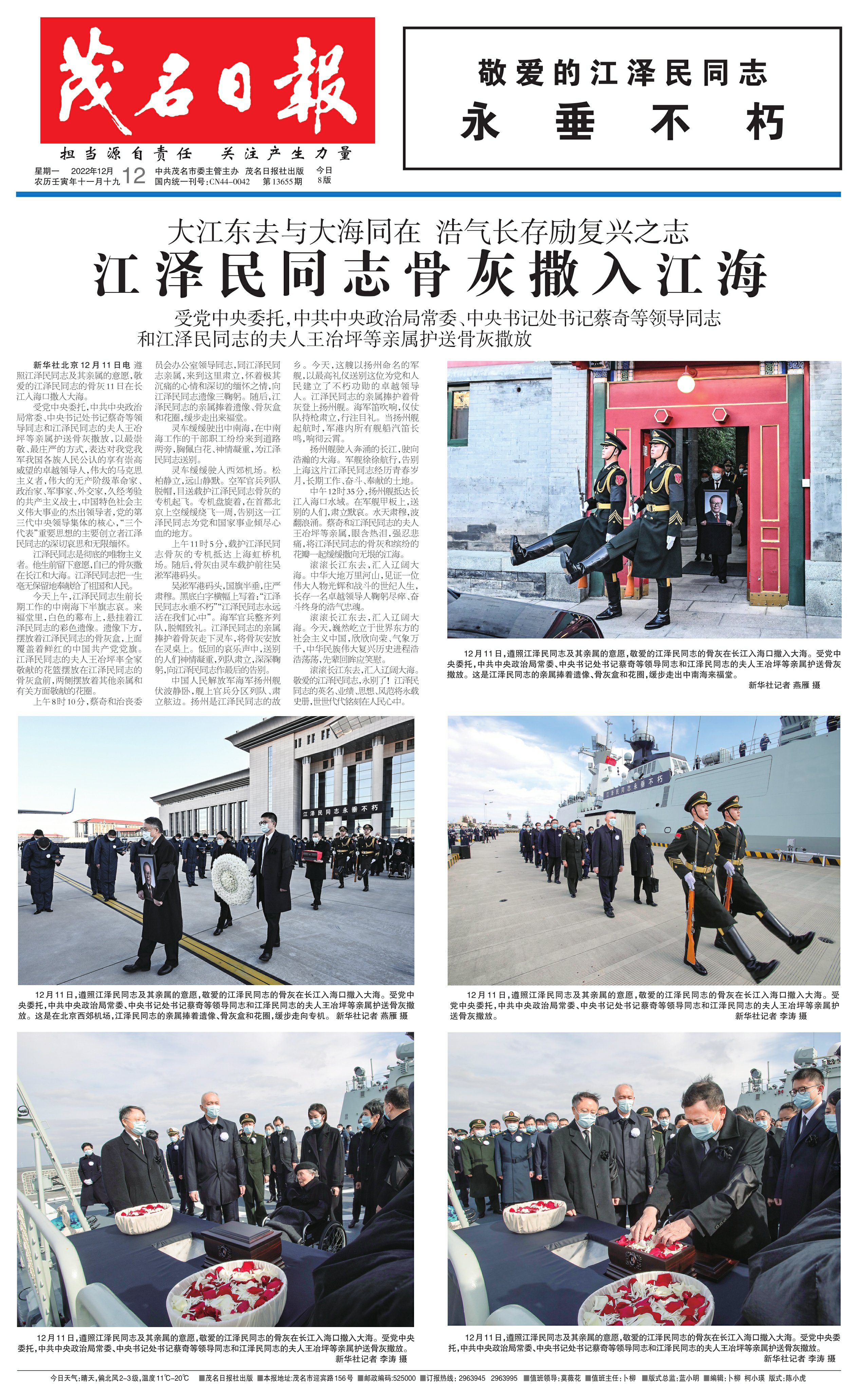江泽民同志骨灰撒入江海