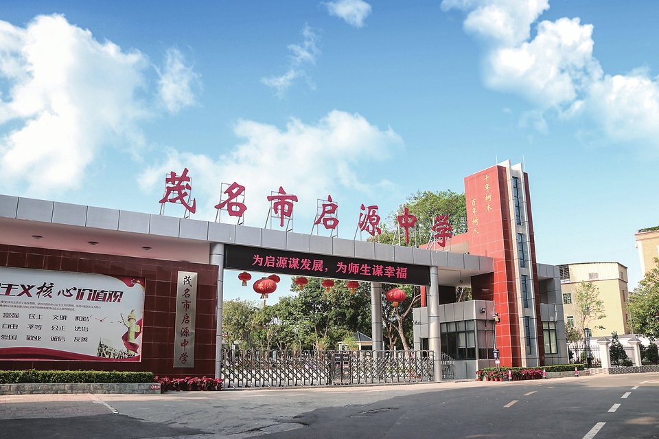 茂名市启源中学,是目前茂名市直主城区一所公办寄宿制初中。在市委教育工委、市教育局的正确领导和亲切关怀下,在陈渊云校长的团结带领下,启源中学秉承着“为启源谋发展,为师生谋幸福”的办学理念,全体师生员工上下齐心,踔厉奋发,全面贯彻落实党的二十大精神,正努力建设有特色高标准的现代化学校。