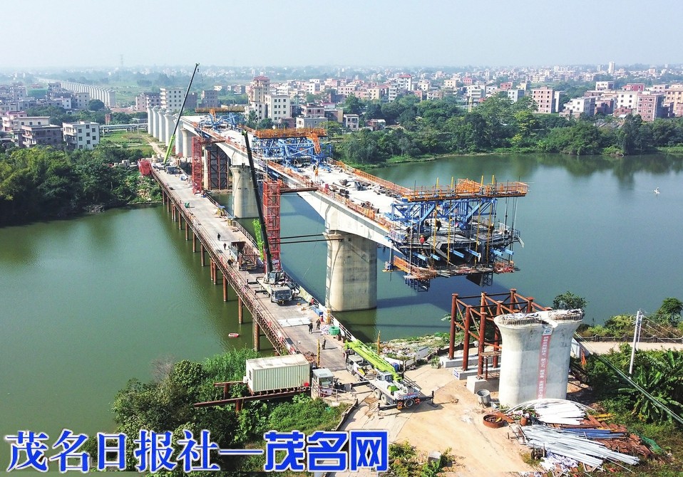 目前,驾车经过茂名大道潭莲路段,可看到横跨茂名大道的广湛高铁大桥已经合龙。其实,广湛高铁从茂名南站出来后继续西行,就会走上一条长达11公里的袂花江特大桥。袂花江特大桥跨越茂名大道后就沿袂花江并肩而行,在袂花圩2号桥跨越袂花江进入北斗村,在下北斗村再一次跨越袂花江,之后再跨越文运河,这座全长11153.83米的特大桥是一路跨过三次袂花江及其支流。